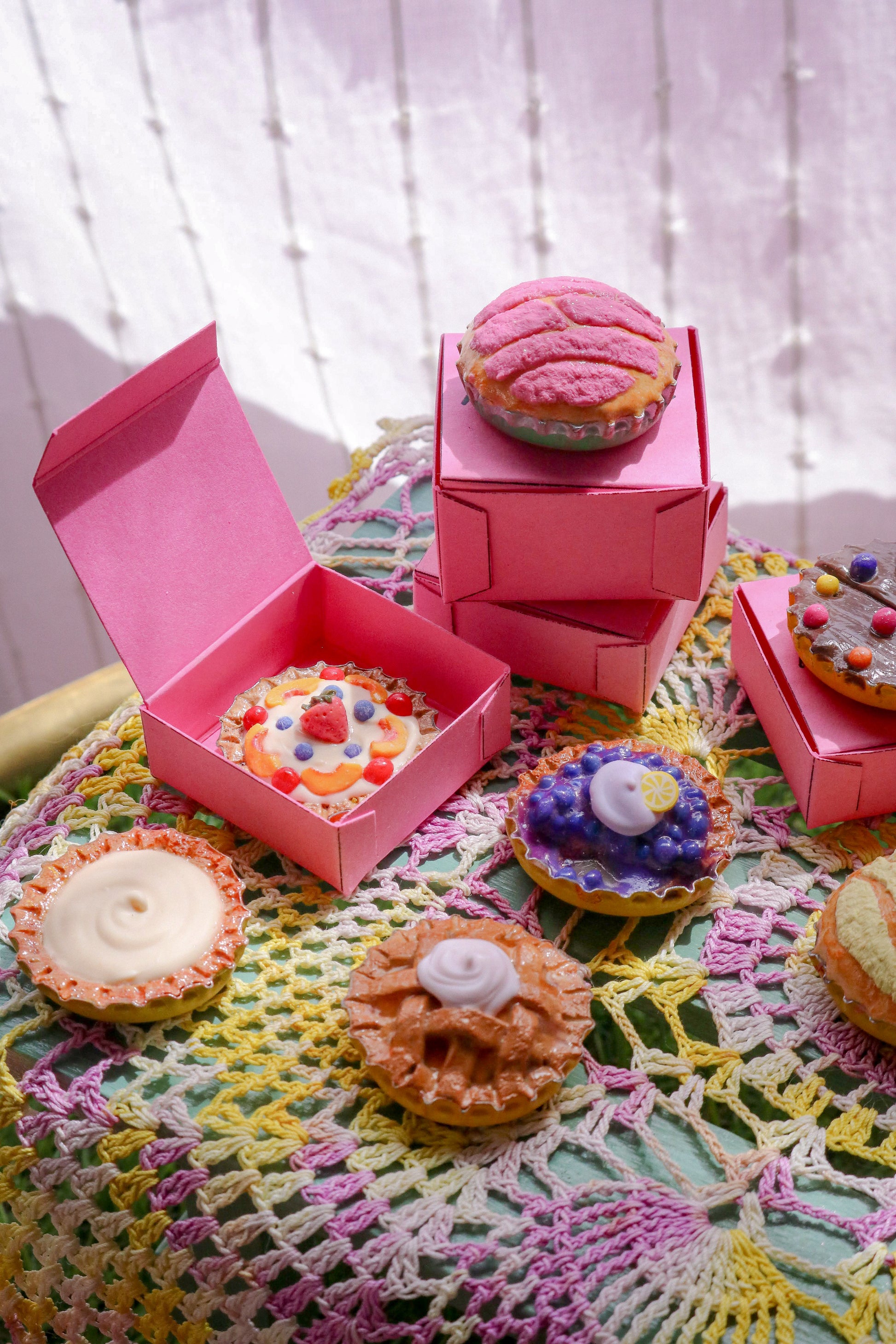 Inspired by the hyper-real shokuhin sampuru displays in Japanese restaurant windows, the vibrant, delicate tradition of porcelana fría, story-rich miniatures from Mexican tianguis markets, and the whimsical world of Amelia Bedelia, these clay treats celebrate play, detail, and everyday wonder.