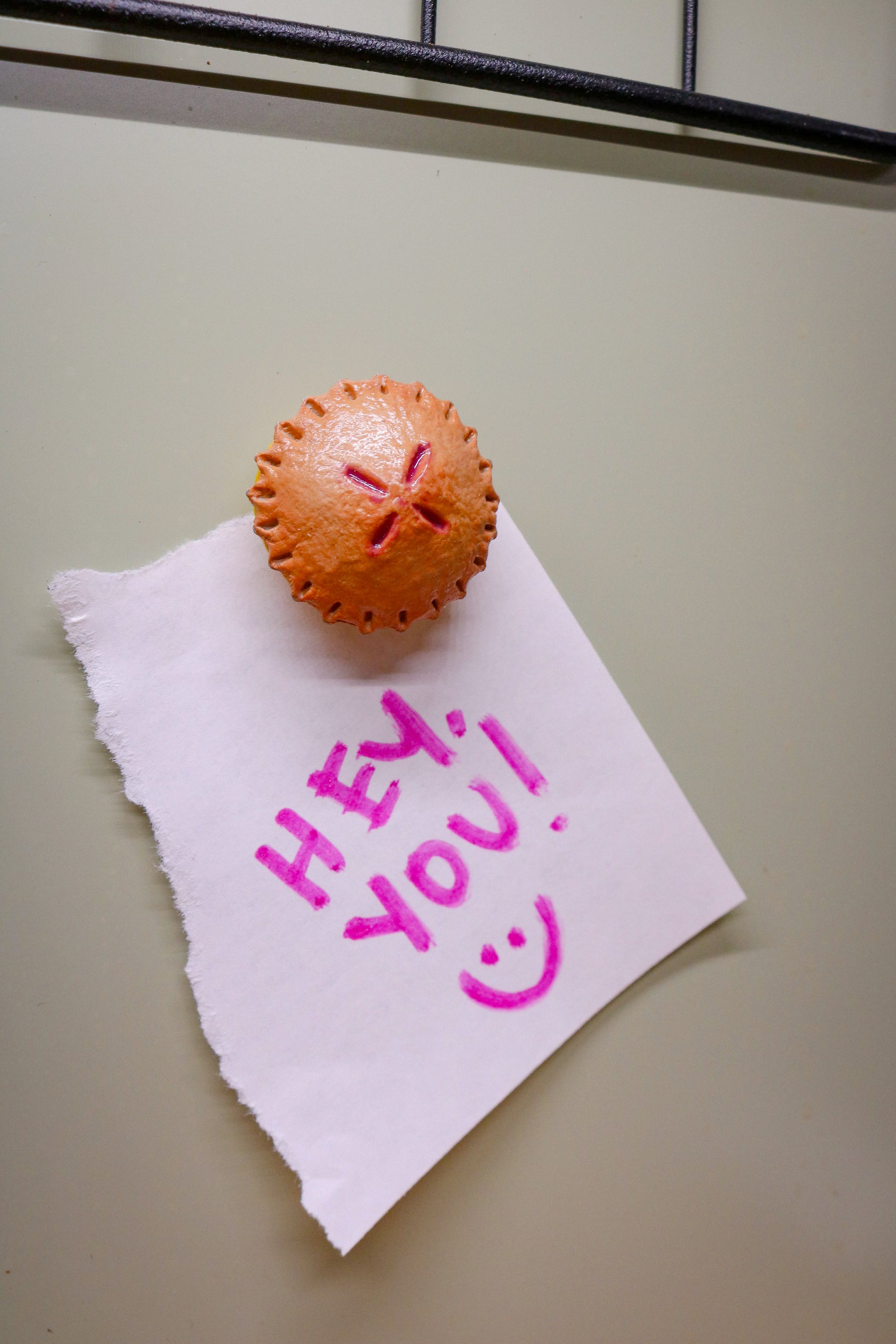 Add a heavy-duty magnet (+$1.50) to keep your pie close—on your fridge, your desk, or your little altar of sweet things.